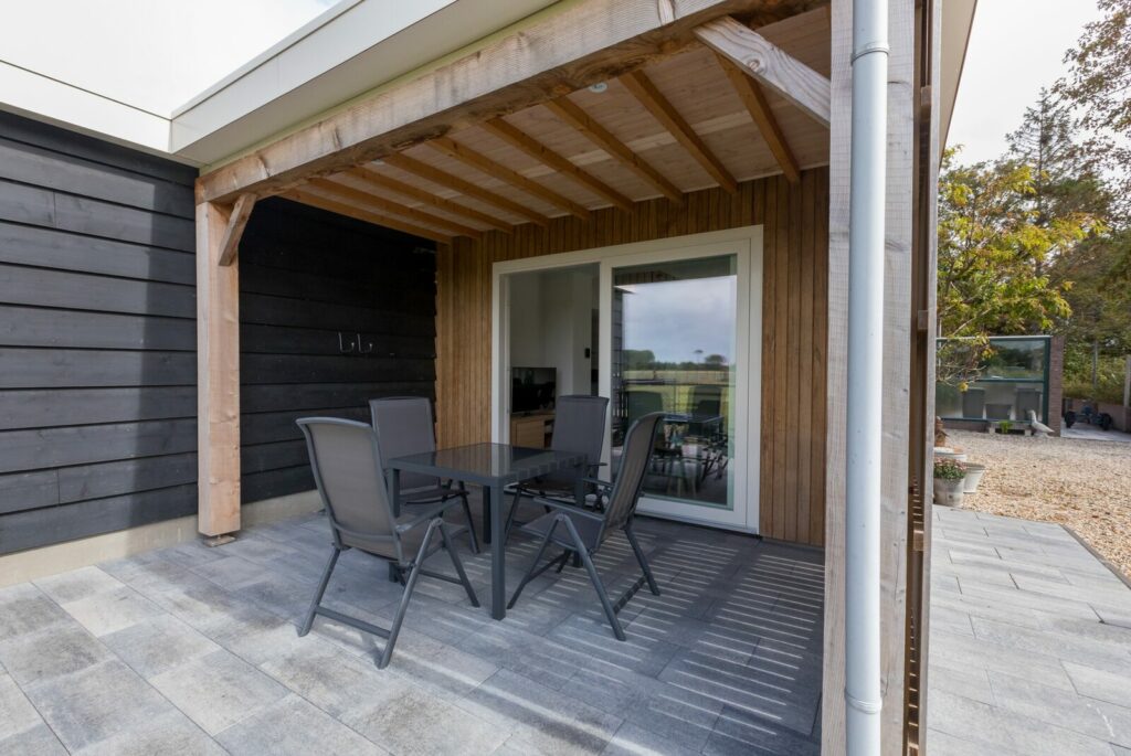 Vanuit de woonkamer stap je de overkapte veranda op waar het heerlijk genieten is in de avonduren van de ondergaande zon of een zwoele zomeravond.