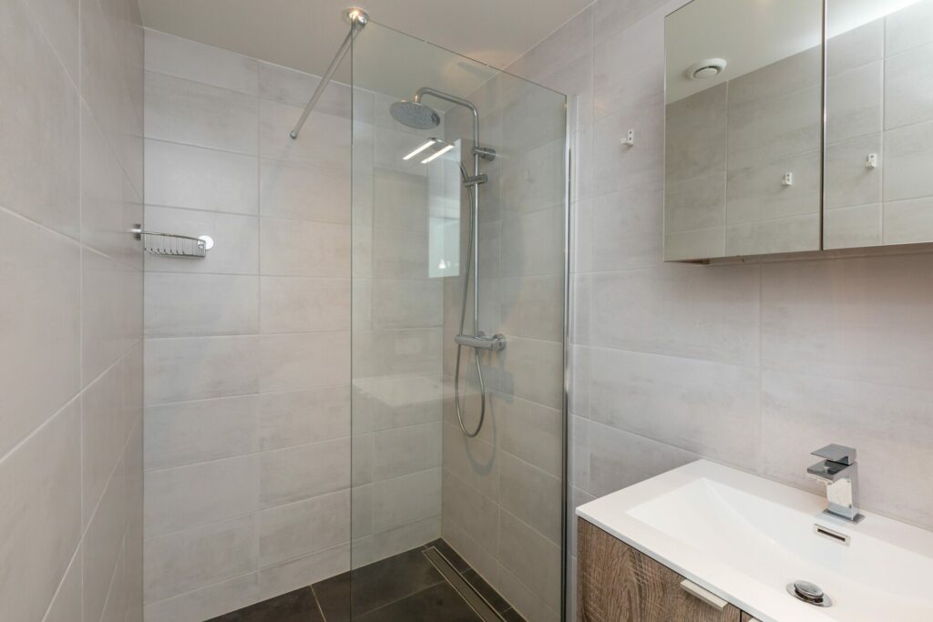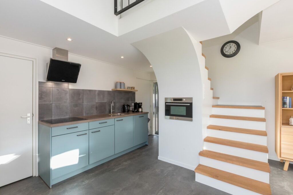 De badkamer heeft een wastafel en inloopdouche. Er is een apart toilet. De open trap leidt naar de bovenverdieping. Hier zijn twee slaapkamers met eenpersoonsbedden aanwezig, die een heerlijke nachtrust garanderen.